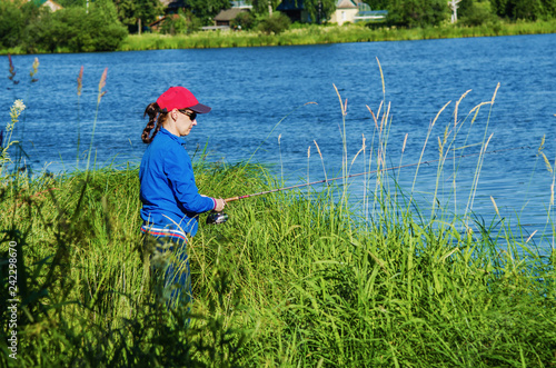 fishing, woman, lake, river, rod, nature, equipment, leisure, catch, summer, spinning, beautiful, people, female, person, girl, adult, healthy, water, fresh, travel, 1, smile, lifestyle, happiness, outdoors, sport, relaxation, rural, hobby, day, green