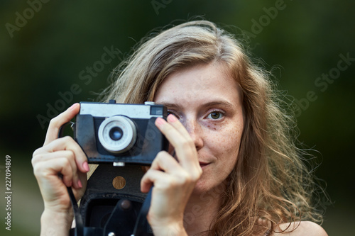 Woman with vintage camera