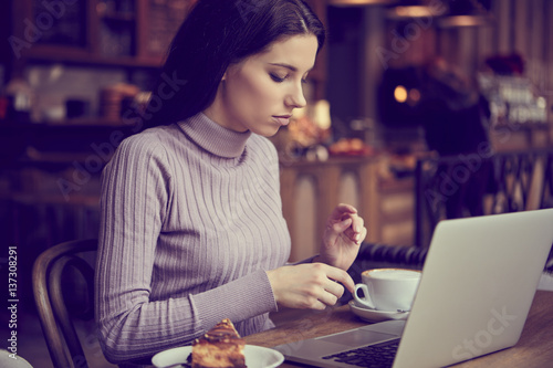 woman, beautiful, laptop, table, cafes, work, female, caucasian, girl, cyberspace, computer, young, working, brunette, student, study, casual attire, studying, face, technology, smile, beauty, notebook, hot drink, lifestyle, using, sitting, attractive, window, business, success, model, networking, eatery, portrait, shop, social, enter, job, draw, browse, white, paper, people, wireless, positive, person