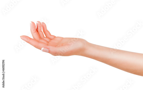 hand, copy space, woman, holding, showing, gesture, empty, virtual, adult, assistance, background, beautiful, beauty, body, carrying, concept, cosmetic, female, finger, girl, giving, human, isolated, open, palm, presenting, side, signs, stretched, symbol, white, closeup, femininity, fingernail, skin, manicure, arm, care, offer, show, up, view, advertise, conceptual, gesticulate, gift, object, presentation, something