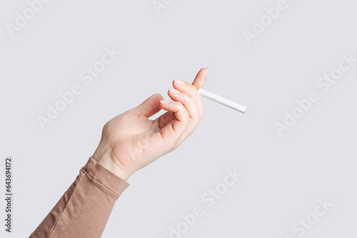Woman's hand holding a cigarette. The concept of the dangers of smoking