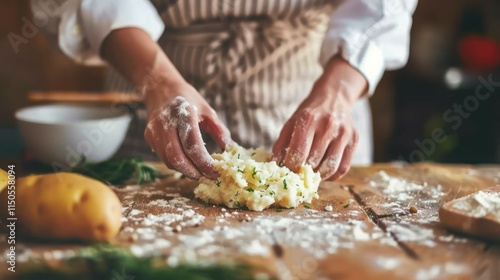 cooking, food, preparing, mashed, potato, dough, kneading, hand, flour, kitchen, receipe, ingredient, herb, rosemary, baking, meal, rustic, homemade, deliciously, delicious, fresh, healthy, simple, easy, tasty, food preparation, family, comfort, dinner, lunch