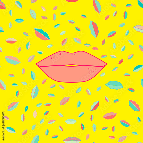 Woman's Lips seamless pattern on yellow background. Vector flat illustration