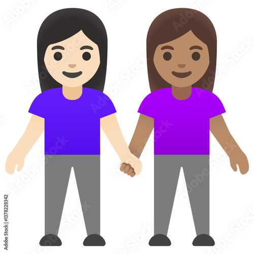 Women Holding Hands: Light Skin Tone, Medium-Dark Skin Tone