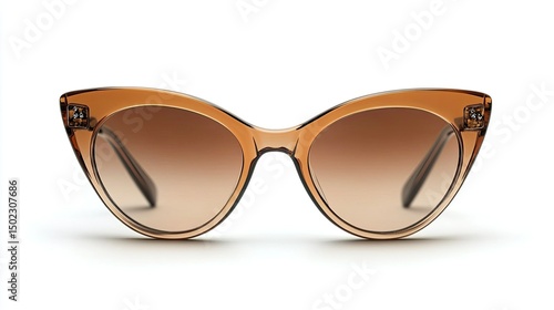 Women’s sunglasses with brown lenses isolated on a white background, showcasing a stylish fashion accessory