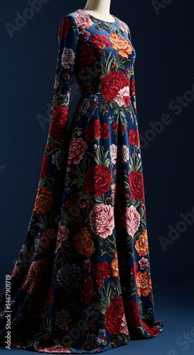 women's dress with floral pattern fashion style art