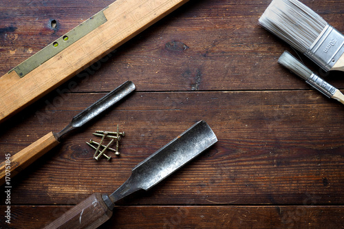 carving, industry, workshop, chisel, woodwork, wood, craftsman, carpenter's shop, equipment, carpenter, timbering, work, workbench, wooden, vintage, plank, rough, handcraft, construction, grimy, hobby, natural, gouge, flat, carver, old, design, topview, craft, tool, timber, professional, skill, board, lay, table, top, tool, overhead, joinery, furniture, background, assortment, object, spirit level