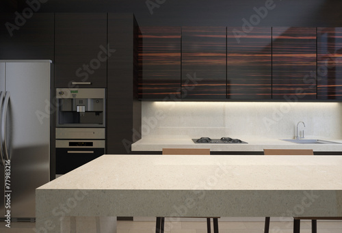 appliance, architecture, bar, brown, chair, clean, construction, contemporary, counter, decorating, decoration, design, dinner, domestic, estate, expensive, floor, food, furniture, granite, home, horizontal, house, illuminated, indoor, interior, island, kitchen, lamp, light, luxury, marble, microwave, new, refrigerator, residential, restoring, room, sink, stainless, steel, stove, structure, tile, wood