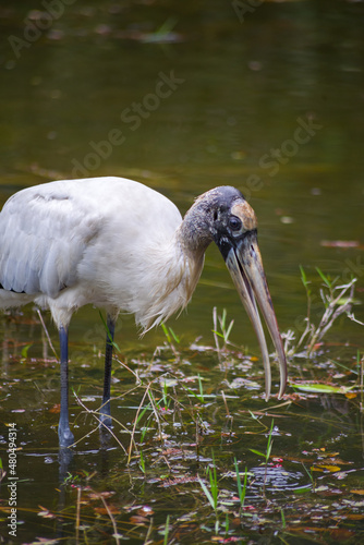 Wood Stork feeding in a lake