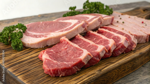 meat, food, pork meat, raw, beef, steak, fresh, dinner, fat, meal, isolated, red, slice, white, chop, plate, uncooked, cut, board, epicure, butcher, chop, bar-b-q, freshness, ingredient