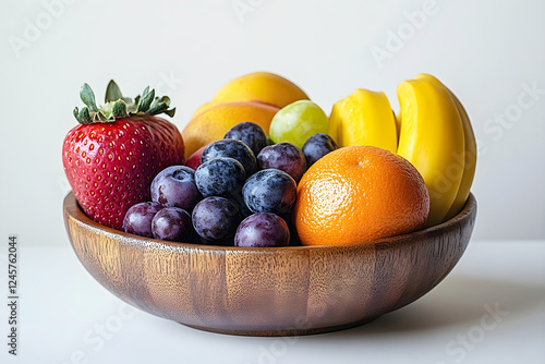 bowl, wooden, fresh, strawberry, grape, banana, orange, peach, healthy, colourful, food, natural, diet, tropical, vitamin, ripe, nourishment, organic, sweet, vegetarian, raw, dessert, juicy, snack, vibrant, clean, decor, still life, simple, rustic, kitchen, aesthetic, bright, wholesome, delicious, nature, minimalistic, arrangement, culinary, summer, texture, edible