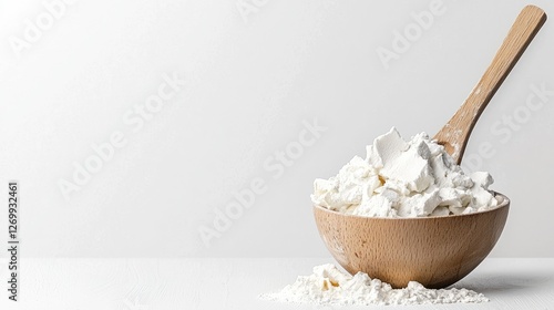 Wooden bowl of flour, simple still life, kitchen scene, for baking recipe