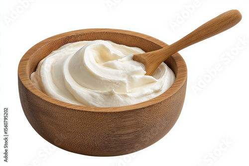 Wooden bowl with sour cream and wooden spoon isolated on white background, Super Clipping Saint Alexander F motel .06823457a9b f狗狗 raili romanticism commercial photography, Super-resolution hoausing s