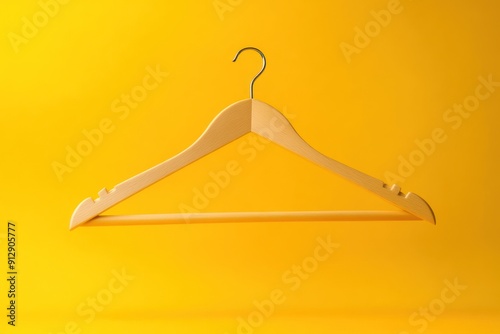 wood, hanger, clothes, clothing, yellow, background, studio, minimal, simple, design, fashion, retail, shop, store, style, modern, clean, object, isolated, product, single, concept, empty, sale, display, hanging, accessory, clothes rack, closet, hook, metal, wooden, brown, smooth, surface, bright, light, shadow, minimalist, photo