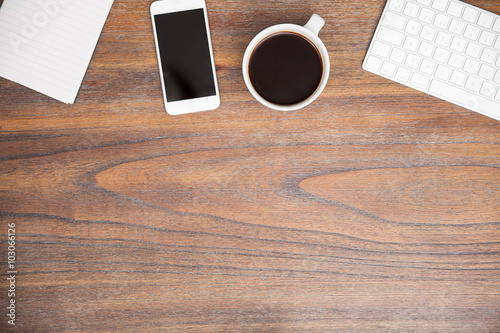 desk, workspace, office, desktop, table, studio, background, work, technology, home, business, modern, workplace, top, mac, stylish, mock-up, mock, up, flat, lay, topview, up high, keyboard, copy space, copy space, wood, smartphone, mobile phone, notepad, hot drink