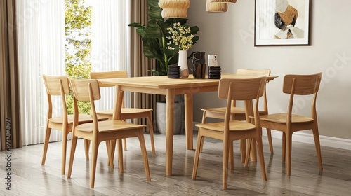 dining, table, chair, wooden, furniture, room, interior, design, decor, home, house, modern, minimalist, style, natural, wood, set, light, bright, comfortable, elegant, stylish, contemporary, living, space, kitchen, brown, grain, clean, line, simple, aesthetic, warm, cosy, rustic, structure, pattern, traditional, classic, warmth