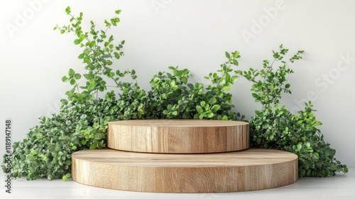 display, pedestal, green leaf, nature, botanical, minimalistic, modern, environmentally friendly, sustainability, greenery, interior design, decor, fresh, vibrant, texture, colours, organic, arrangement, stage, showcase, exhibition, presentation, setting, environment, simplicity, clean, elegant, serene, calming, minimal, contemporary, stylish, wood texture, lush, foliage, craftsmanship, artisan, earthy, calmness, harmony, symmetry