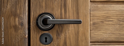 Wooden Door Lock and Keyhole Close-Up Security and Protection Concept with Empty Space for Text on Rustic Background
