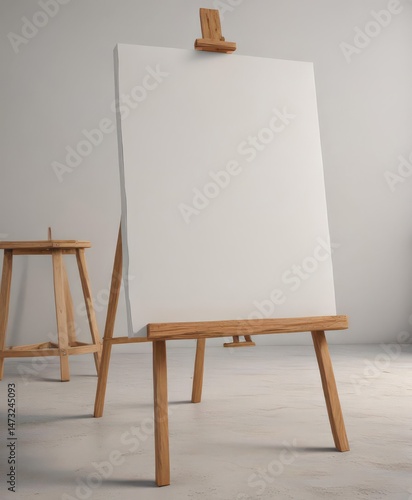 Wooden easel legs & base support a large blank canvas , canvas, legs