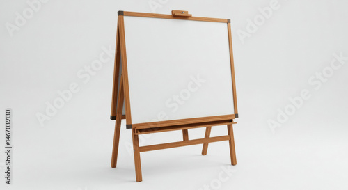 Wooden easel whiteboard standing on a plain background. A simple, functional piece of educational furniture for a classroom setting.