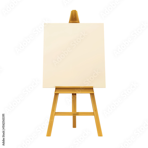 Wooden Easel with Blank Canvas Isolated on White