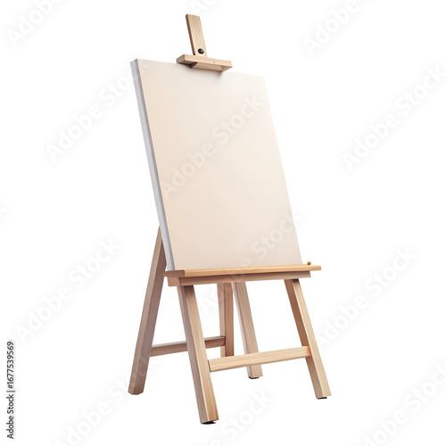 wooden easel with blank canvas isolated on white background png Cutout