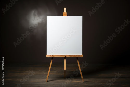 Wooden easel with blank canvas mockup. Copy space for text