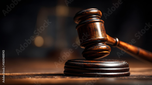 Wooden Gavel and Hammer Used by Judges for Sentences and Court Proceedings in a Dramatic Setting