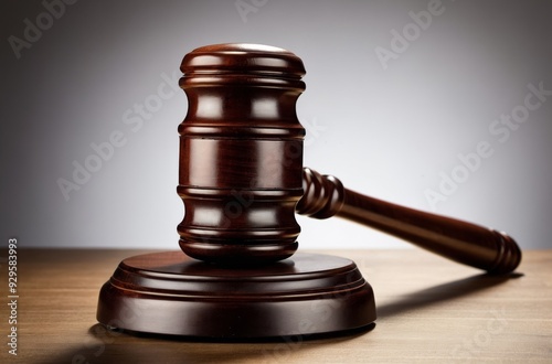Wooden gavel on desk surface
