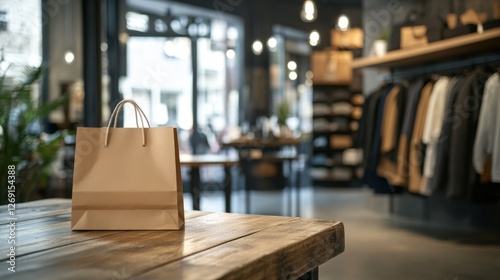 Wooden Paper Bag on a Wooden Table at a Clothing Store