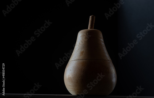 wooden pear against dark background ,studio style shot.concept healthy eating .