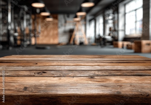 table, wooden, gym, fitness, interior, blurred, background, rustic, brown, empty, space, physical exercise, equipment, grey, light, modern, industrial, sport, health, lifestyle, exercise, strength, fitness centre, training, motivation, healthy, sharpened, product, display, detail, closeup, texture, surface, ambience, composition, perspective, design, view, depth, background, large, area, wide, daylight
