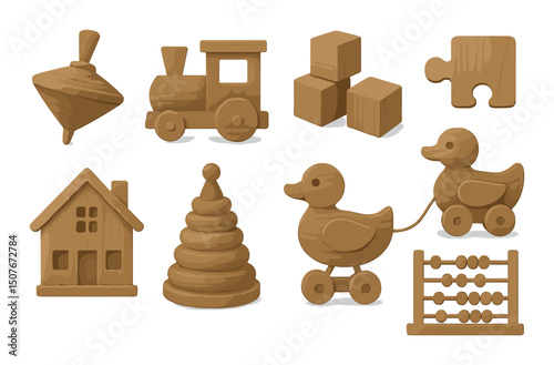Wooden toy silhouettes icons set – simple, playful and child-friendly designs