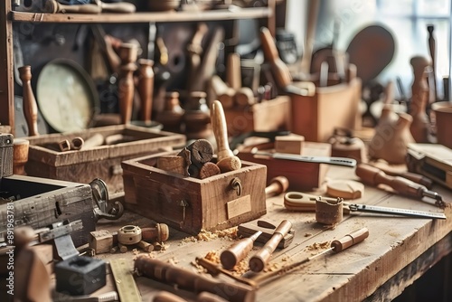 Wooden Workshop: Close-up of a Carpenter's Workbench