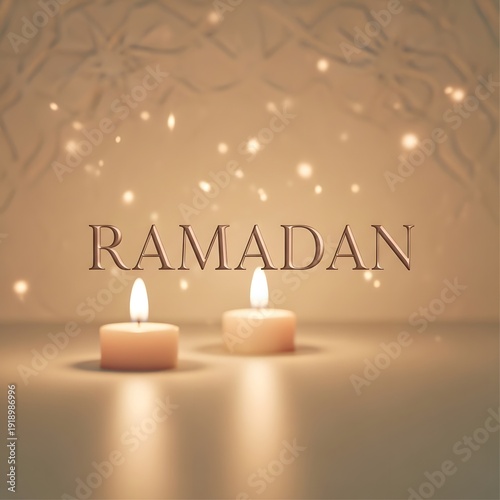 word Ramadan Warm Candlelight Glow on Soft Beige Minimal Background