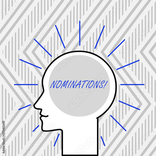Word writing text Nominations. Business photo showcasing action of nominating or state being nominated for prize