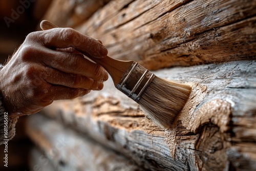 wood, preservative, log, house, carpenter, brush, applying, preserving, treatment, maintenance, protection, weather, damage, home, building, construction, repair, renovation, timber, log, cabin, bungalow, rustic, work, men at work, hand, skill, craft, traditional
