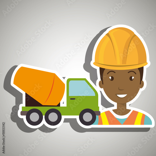 worker mixer cement machinery vector illustration design