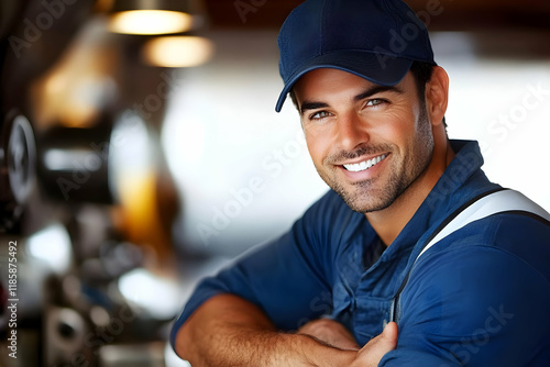 men at work, smile, confident, workshop, tool, job, profession, career, blue-collar, industry, labor, employment, happy, portrait, man, male, cap, uniform, factory, manufacturing, machinery, equipment, workplace, industrial, occupation, technician, engineer, service, repair, maintenance, craftsmanship, expertise, building, construction, positive, motivation, success, achievement, competence, dedication, hard work, professional, pride, sharpened, determination, responsibility, safety