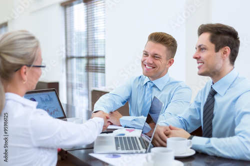 business, person, people, male, occupation, man, girl, office, adult, meeting, businessman, young, men at work, technology, team, woman, planning, professional, mature, white, teamwork, businesswoman, working, laptop, smiling, discussion, female, talking, positive, manager, human, table, indoor, handshake, happiness, success
