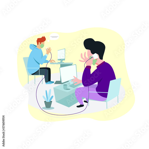 at work, business, cartoon, colleague, company, computer, disease, distance, diversity, employee, face mask, flat, graphic, guideline, health, hygiene, icon, illustration, cyberspace, job, laptop, lifestyle, measure, meeting, office, outbreak, pandemic, person, prevention, protection, protective, quarantine, safe, safety, sitting, symbol, teamwork, technology, vector, virus, work, men at work, workplace