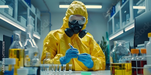 working, with, hazardous, biological, material, laboratory, while, wearing, yellow, suit, safety, protection, research, containment, biohazard, glove, goggles, mask, precaution, handling, exposure, contamination, protocol, equipment, training, procedure, risk, assessment, emergency, response, sterilization, disposal, ventilation, system, isolation, chamber, quarantine, area, monitoring, personal, protective, infectious, agent