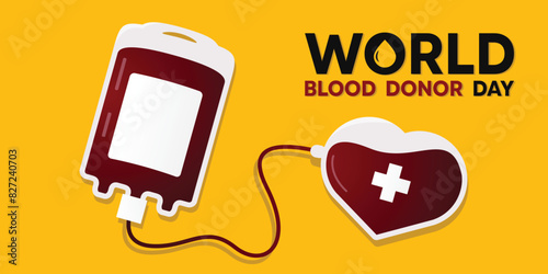 World Blood Donor Day. Blood, heart and plus icon. Great for cards, banners, posters, social media and more. Yellow background.