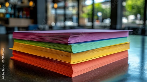 World Creativity and Innovation concept week Colorful stack of documents on a table.