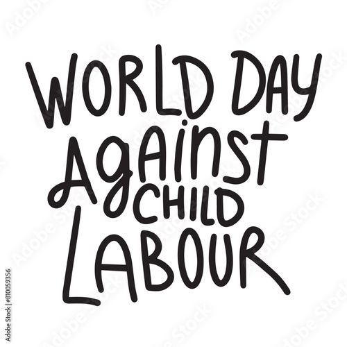 World Day Against Child Labor lettering text banner black color. Hand drawn vector art.