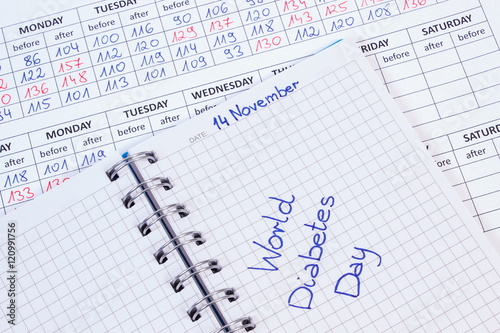 World diabetes day in notebook, results of measurement of sugar