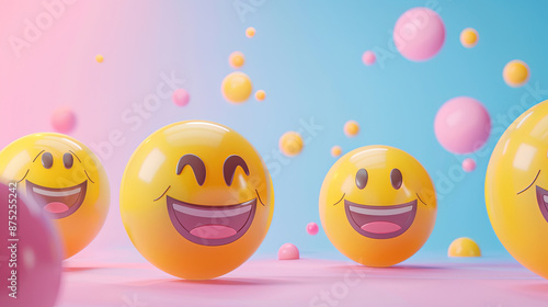 World Emoji Day Concept. Colorful emoji faces with smiling and laughing expressions. Emoji Celebration. World smile day emojis. World mental health day. World Laughter Day. Joyful mood. Copy space