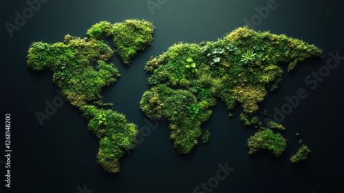 World map made from lush green moss, nature-inspired design