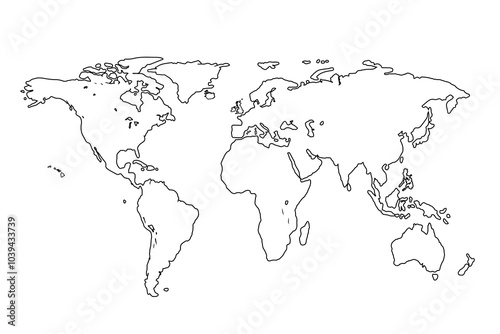 World map Outline, Linear Doodle Drawing. for website layouts,background,education, precise,customizable,Travel worldwide,map silhouette backdrop,earth geography, political,reports.