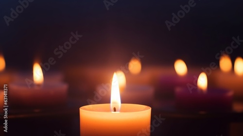 World Religion Dayconcept:Many burning candles with shallow depth of field, Generative AI